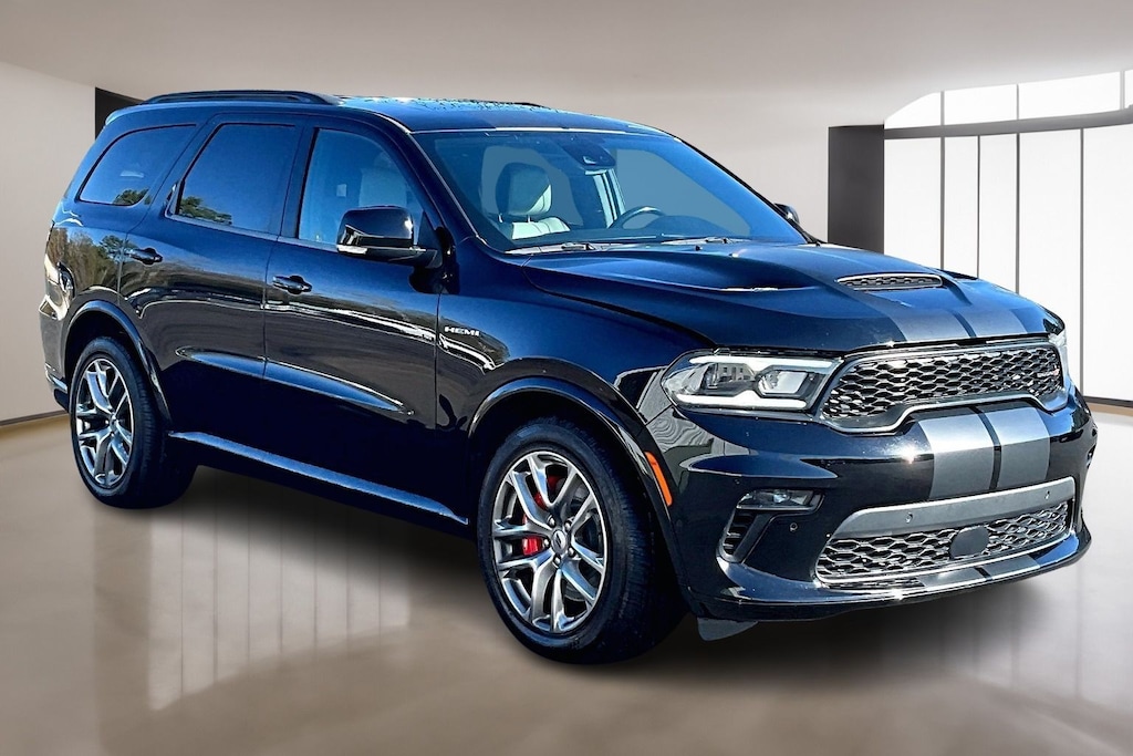 Welcome to Paul Thigpen CDJR of Waynesboro, this vehicle comes with the following Quick Order Package 22U R/T Premium (115V Auxiliary Power Outlet, 19 harman/kardon Amplified Speakers w/Subwoofer, 7 & 4 Pin Wiring Harness, 825 Watt Amplifier, Adaptive Cruise Control w/Stop, Advanced Brake Assist, Auto-Dimming Exterior Driver Mirror, Black Roof Rails, Bright Cargo Area Scuff Pads, Class IV Receiver Hitch, Dual Remote USB Port - Charge Only, Exterior Mirrors w/Heating Element, Exterior Mirrors w/Memory, Exterior Mirrors w/Supplemental Signals, Floor Console w/Leather Armrest, Forged Carbon Fiber Interior Accents, Full Speed Forward Collision Warning Plus, Gloss Black Exterior Mirrors, Heated Second Row Seats, Integrated Roof Rail Crossbars, Lane Departure Warning Plus, Leather Trimmed Bucket Seats, Leather Wrapped Door Panels, LED Auxiliary Low Beam & Turn Signal, Power 6x9 Multi-Function Foldaway Mirrors, Power 8-Way Driver Memory 8-Way Passenger Seats, Power Sunroof, Power Tilt & Telescopic Steering Column, Premium Instrument Panel, Premium LED Fog Lamps, Radio/Driver Seat/Mirrors Memory, Red Accent Stitching, Trailer Brake Control, and Ventilated Front Seats), Tow 'N Go Package (145 mph Maximum Speed Calibration, 160 mph Primary Speedometer, Active Noise Control System, Adaptive Damping, Automatic Headlamp Leveling System, Electronic Limited Slip Differential Rear Axle, High Perform Suspension, High Performance Exhaust, Performance Tuned Steering, Quadra-Trac Active-on-Demand 4WD, Red Brembo Brakes w/SRT Performance Pad, Run Flat Tires, Sport/Track/Tow/Snow Drive Modes, Upper/Lower Body Color Rear Fascia, and Wheels: 20" x 10" Hyper Black Aluminum), Durango R/T, 4D Sport Utility, HEMI 5.7L V8 Multi Displacement VVT, 8-Speed Automatic, AWD, DB Black Crystal Clearcoat, Black Leather, 3.09 Rear Axle Ratio, 3rd row seats: split-bench, 4-Wheel Disc Brakes, 9 Speakers, ABS brakes, Air Conditioning, Alloy wheels, AM/FM radio: SiriusXM w/360L, Apple CarPlay/Android Auto, Auto High-beam Headlights, Auto-dimming Rear-View mirror, Auto-leveling suspension, Automatic temperature control, Brake assist, Bumpers: body-color, Cloth Bucket Seats w/Shift Insert, Compass, Delay-off headlights, Driver door bin, Driver vanity mirror, Dual front impact airbags, Dual front side impact airbags, Electronic Stability Control, Emergency communication system: SiriusXM Guardian, Four wheel independent suspension, Front anti-roll bar, Front Bucket Seats, Front Center Armrest w/Storage, Front dual zone A/C, Front reading lights, Fully automatic headlights, Garage door transmitter, Heated door mirrors, Heated front seats, Heated steering wheel, Illuminated entry, Knee airbag, Leather steering wheel, Low tire pressure warning, MOPAR Dual Stripes- Gunmetal Low Gloss, Navigation system: TomTom, Occupant sensing airbag, Outside temperature display, Overhead airbag, Overhead console, Panic alarm, ParkView Rear Back-Up Camera, Passenger door bin, Passenger vanity mirror, Power door mirrors, Power driver seat, Power Liftgate, Power steering, Power windows, Radio data system, Radio: Uconnect 5 Nav w/10.1" Display, Rain sensing wipers, Rear air conditioning, Rear anti-roll bar, Rear Load Leveling Suspension, Rear reading lights, Rear seat center armrest, Rear window defroster, Rear window wiper, Remote keyless entry, Security system, Speed control, Speed-sensing steering, Speed-Sensitive Wipers, Split folding rear seat, Spoiler, Sport steering wheel, Steering wheel mounted audio controls, Tachometer, Telescoping steering wheel, Tilt steering wheel, Traction control, Trip computer, Variably intermittent wipers, Voltmeter, and Wheels: 20" x 8.0" Fine Silver.