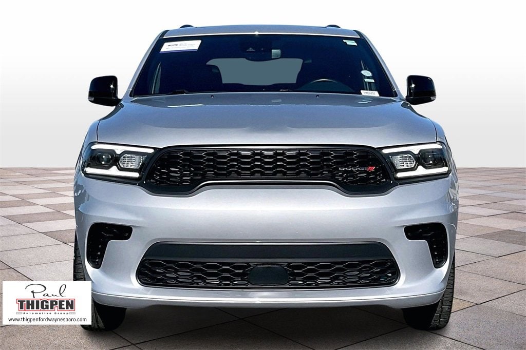 Certified. Triple Nickel 2024 Dodge Durango GT Plus AWD 8-Speed Automatic 3.6L V6 24V VVT Ford Blue Certification Certified, AWD, 1-Year Trial (Registration Required), 10.1" Touchscreen Display, 115V Auxiliary Power Outlet, 180 Amp Alternator, 3.45 Rear Axle Ratio, 3rd row seats: split-bench, 4-Wheel Disc Brakes, 4G LTE Wi-Fi Hot Spot, 6 Speakers, 7 & 4 Pin Wiring Harness, ABS brakes, Adaptive Cruise Control w/Stop, Air Conditioning, Alloy wheels, AM/FM radio: SiriusXM, Apple CarPlay, Apple CarPlay/Android Auto, Auto-Dimming Exterior Driver Mirror, Auto-dimming Rear-View mirror, Automatic temperature control, Black Roof Rails, Blind Spot w/Trailer Detection, Brake assist, Bumpers: body-color, Class IV Receiver Hitch, Cloth Bucket Seats w/Shift Insert, Compass, Connected Travel & Traffic Services, Delay-off headlights, Disassociated Touchscreen Display, Driver door bin, Driver vanity mirror, Dual front impact airbags, Dual front side impact airbags, Dual Remote USB Port - Charge Only, Electronic Stability Control, Exterior Mirrors w/Heating Element, Exterior Mirrors w/Memory, Exterior Mirrors w/Supplemental Signals, Floor Console w/Leather Armrest, For Details Visit DriveUconnect.com, Four wheel independent suspension, Front anti-roll bar, Front Bucket Seats, Front Center Armrest w/Storage, Front dual zone A/C, Front License Plate Bracket, Front reading lights, Full Speed Forward Collision Warning Plus, Fully automatic headlights, Garage door transmitter, Global Telematics Box Module (TBM), Gloss Black Exterior Mirrors, Google Android Auto, GPS Antenna Input, GPS Navigation, HD Radio, Heated door mirrors, Heated front seats, Heated Second Row Seats, Heated steering wheel, Heavy-Duty Engine Cooling, Illuminated entry, Integrated Center Stack Radio, Integrated Roof Rail Crossbars, Integrated Voice Command w/Bluetooth, Knee airbag, Leather steering wheel, Leather Trimmed Bucket Seats, Leather Wrapped Door Panels, LED Auxiliary Low Beam & Turn Signal, Low tire pressure warning, Occupant sensing airbag, Outside temperature display, Overhead airbag, Overhead console, Panic alarm, ParkView Rear Back-Up Camera, Passenger door bin, Passenger vanity mirror, Power 6x9 Multi-Function Foldaway Mirrors, Power 8-Way Driver Memory 8-Way Passenger Seats, Power door mirrors, Power driver seat, Power Driver/Passenger 4-Way Lumbar Adjust, Power Liftgate, Power steering, Power Sunroof, Power Tilt & Telescopic Steering Column, Power windows, Quick Order Package 2BG GT Plus, Radio data system, Radio: Uconnect 4 w/8.4" Display, Radio: Uconnect 5 Nav w/10.1" Display, Radio/Driver Seat/Mirrors Memory, Rear air conditioning, Rear anti-roll bar, Rear Load Leveling Suspension, Rear reading lights, Rear seat center armrest, Rear window defroster, Rear window wiper, Red Accent Stitching, Remote keyless entry, SiriusXM Guardian - Included Trial (B), SiriusXM w/360L, Speed control, Speed-sensing steering, Speed-Sensitive Wipers, Split folding rear seat, Spoiler, Sport steering wheel, Steering wheel mounted audio controls, Tachometer, Telescoping steering wheel, Tilt steering wheel, Traction control, Trailer Brake Control, Trip computer, USB Host Flip, Variably intermittent wipers, Ventilated Front Seats, Voltmeter, Wheels: 20" x 8.0" Fine Silver, AWD.