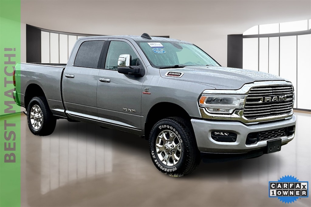 Welcome to Paul Thigpen CDJR of Waynesboro, this vehicle comes with the following Laramie Level 1 Equipment Group (12" Touchscreen Display, 2nd Row In Floor Storage Bins, 4G LTE Wi-Fi Hot Spot, Alexa Built-In, Apple CarPlay, Auto Adjust In Reverse Exterior Mirrors, Auto Dim Exterior Mirror, Auto High Beam Headlamp Control, Auto Power-Folding Mirrors, Auto-Dimming Exterior Passenger Mirror, Blind Spot & Cross Path Detection, Center Hub, Chrome Exterior Mirrors, Connected Travel & Traffic Services, Connectivity - US/Canada, Disassociated Touchscreen Display, Exterior Mirrors Courtesy Lamps, Exterior Mirrors w/Heating Element, Exterior Mirrors w/Memory, Exterior Mirrors w/Supplemental Signals, Foam Bottle Insert (Door Trim Panel), For Details, Visit DriveUconnect.com, For More Info, Call 800-643-2112, Forward & Reverse Utility Lights, Front LED Fog Lamps, Global Telematics Box Module (TBM), Google Android Auto, GPS Antenna Input, GPS Navigation, HD Radio, Integrated Voice Command w/Bluetooth, LED Reflector Headlamps, LED Tail Lamps, Mirror Running Lights, Off-Road Information Pages, ParkSense Front/Rear Park Assist System, Power Adjust Mirrors, Power Adjustable Convex Aux Mirrors, Power Adjustable Pedals w/Memory, Power Heated Fold Telescopic Mirrors w/Memory, Power Telescoping Mirrors, Radio: Uconnect 5 Nav w/12.0" Display, Rain Sensitive Windshield Wipers, Rear Power Sliding Window, Rear Window Defroster, Remote Tailgate Release, Selectable Tire Fill Alert, SiriusXM Radio Service, SiriusXM w/360L, Trailer Tow Pages, and Wheels: 18" x 8.0" Polished Aluminum), Quick Order Package 2HH Laramie, 10 Speakers, 115V Auxiliary Rear Power Outlet, 2 Way Rear Headrest Seat, 220 Amp Alternator, 3.73 Axle Ratio, 4 Way Front Headrests, 4-Wheel Disc Brakes, ABS brakes, Active Noise Control System, Air Conditioning, Alloy wheels, AM/FM radio: SiriusXM with 360L, Apple CarPlay/Android Auto, Automatic temperature control, Brake assist, Bumpers: body-color, Compass, Delay-off headlights, Driver door bin, Driver vanity mirror, Dual front impact airbags, Dual front side impact airbags, Electronic Stability Control, Electronically Controlled Throttle, Front anti-roll bar, Front Center Armrest w/Storage, Front dual zone A/C, Front License Plate Bracket, Front reading lights, Front Seat Back Map Pockets, Fully automatic headlights, Garage door transmitter, Heated door mirrors, Heated Front Seats, Heated front seats, Heated Steering Wheel, Heated steering wheel, Illuminated entry, Leather steering wheel, Leather Trim 40/20/40 Bench Seat, Low tire pressure warning, Manufacturer's Statement of Origin, Navigation System, Occupant sensing airbag, Outside temperature display, Overhead airbag, Overhead console, Panic alarm, ParkView Rear Back-Up Camera, Passenger door bin, Passenger vanity mirror, Power 2-Way Driver Lumbar Adjust, Power 2-Way Passenger Lumbar Adjust, Power Adjust 8-Way Driver Seat, Power Adjust 8-Way Front Passenger Seat, Power door mirrors, Power driver seat, Power passenger seat, Power steering, Power windows, Radio data system, Rear 60/40 Folding Seat, Rear anti-roll bar, Rear reading lights, Rear seat center armrest, Rear step bumper, Rear window defroster, Remote keyless entry, Security system, Speed control, Split folding rear seat, Steering wheel mounted audio controls, Tachometer, Tilt steering wheel, Tip Start, Tow Hooks, Traction control, Trip computer, Turn signal indicator mirrors, Variably intermittent wipers, and VoltmeteR.