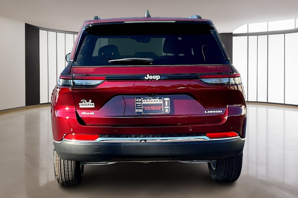 Welcome to Paul Thigpen CDJR of Waynesboro, this vehicle comes with the following Luxury Tech Group I (115V Auxiliary Power Outlet, Heated Front Seats, Heated Steering Wheel, Power Liftgate, Rain Sensitive Windshield Wipers, Remote Start System, Satellite Radio, Secondary Active Grille Shutters, Selectable Tire Fill Alert, and Wireless Charging Pad), Quick Order Package 23D Laredo X (Laredo X, Power Sunroof, and Wheels: 18" x 8" Fully Painted Aluminum), 4WD, 4-Wheel Disc Brakes, 6 Speakers, ABS brakes, Air Conditioning, Alloy wheels, AM/FM radio: SiriusXM, Anti-whiplash front head restraints, Automatic temperature control, Brake assist, Bumpers: body-color, Cloth Seats, Compass, Delay-off headlights, Driver door bin, Driver vanity mirror, Dual front impact airbags, Dual front side impact airbags, Electronic Stability Control, Emergency communication system, Four wheel independent suspension, Front anti-roll bar, Front Bucket Seats, Front Center Armrest w/Storage, Front dual zone A/C, Front reading lights, Fully automatic headlights, Heated door mirrors, Illuminated entry, Knee airbag, Low tire pressure warning, Model Year Tracking, Normal Duty Suspension, Occupant sensing airbag, Outside temperature display, Overhead airbag, Overhead console, Panic alarm, ParkView Rear Back-Up Camera, Passenger door bin, Passenger vanity mirror, Power door mirrors, Power driver seat, Power steering, Power windows, Radio data system, Radio: Uconnect 5 with 8.4" Display, Rear anti-roll bar, Rear reading lights, Rear window defroster, Rear window wiper, Remote keyless entry, Security system, Speed control, Speed-Sensitive Wipers, Split folding rear seat, Spoiler, Steering wheel mounted audio controls, Tachometer, Telescoping steering wheel, Tilt steering wheel, Traction control, Trip computer, Variably intermittent wipers, Voltmeter, and Wheels: 17" x 6.5" Fully Painted Aluminum. 19/26 City/Highway MPG