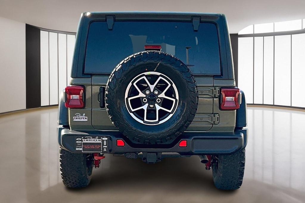 Welcome to Paul Thigpen CDJR of Waynesboro, this vehicle comes with the following Convenience Group (Heated Front Seats, Heated Steering Wheel, and Universal Garage Door Opener), Quick Order Package 22R Rubicon, Technology Group (12.3" Touchscreen Display, 4G LTE Wi-Fi Hot Spot, Apple CarPlay, Auto-Dimming Rear-View Mirror, Connected Travel and Traffic Services, Connectivity - US/Canada, For More Info, Call 800-643-2112, Google Android Auto, GPS Navigation, HD Radio, Integrated Center Stack Radio, Integrated Off-Road Camera, Integrated Voice Command with Bluetooth, Radio: Uconnect 5 Navigation with 12.3" Display, SiriusXM Radio Service, and SiriusXM with 360L), 4-Wheel Disc Brakes, 4.10 Rear Axle Ratio, 8 Speakers, ABS brakes, Air Conditioning, Alloy wheels, Alpine Premium Audio System, AM/FM radio: SiriusXM with 360L, Apple CarPlay/Android Auto, Automatic temperature control, Aux Battery, Auxiliary Switches, Black 3-Piece Hard Top, Brake assist, Class II Receiver Hitch, Cloth Low-Back Bucket Seats, Compass, Delay-off headlights, Driver door bin, Driver vanity mirror, Dual front impact airbags, Dual front side impact airbags, Electronic Stability Control, Emergency communication system: Jeep Connect, Freedom Panel Storage Bag, Front anti-roll bar, Front Bucket Seats, Front Center Armrest w/Storage, Front dual zone A/C, Front fog lights, Front reading lights, Fully automatic headlights, Heated door mirrors, Illuminated entry, Integrated roll-over protection, Low tire pressure warning, MOPAR All-Weather Floor Mats, Non-Lock Fuel Cap Without Discriminator, Occupant sensing airbag, Outside temperature display, Overhead airbag, Panic alarm, ParkView Rear Back-Up Camera, Passenger door bin, Passenger vanity mirror, Performance Suspension, Power door mirrors, Power steering, Power windows, Radio data system, Radio: Uconnect 5 with 12.3" Display, Rear anti-roll bar, Rear reading lights, Rear Window Defroster, Rear Window Wiper/Washer, Remote keyless entry, Security system, Speed control, Split folding rear seat, Steering wheel mounted audio controls, Stop-Start Dual Battery System, Tachometer, Telescoping steering wheel, Tilt steering wheel, Traction control, Trip computer, Variably intermittent wipers, Voltmeter, and Wheels: 17" x 7.5" Machined/Painted Black.