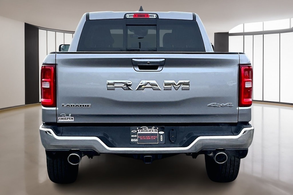 Welcome to Paul Thigpen CDJR of Waynesboro, this vehicle comes with the following Laramie Level 1 Equipment Group (Rain Sensitive Windshield Wipers and Remote Tailgate Release), Quick Order Package 21H Laramie, 10 Speakers, 3 Rear Seat Head Restraints, 4 Way Front Headrests, 4-Wheel Disc Brakes, 4G LTE Wi-Fi Hot Spot, ABS brakes, Air Conditioning, Alloy wheels, AM/FM radio: SiriusXM with 360L, Anti-Spin Differential Rear Axle, Apple CarPlay, Apple CarPlay/Android Auto, Audio memory, Auto High-beam Headlights, Auto Power-Folding Mirrors, Auto-dimming door mirrors, Auto-Dimming Exterior Driver Mirror, Auto-dimming Rear-View mirror, Automatic temperature control, Brake assist, Bumpers: chrome, Chrome Exterior Mirrors, Compass, Connected Travel & Traffic Services, Connectivity - US/Canada, Convex Wide-Angle Exterior Mirror Insert, Delay-off headlights, Dome Dual LED Reading Lamp, Driver door bin, Driver Seat Memory, Driver vanity mirror, Dual front impact airbags, Dual front side impact airbags, Dual-Pane Panoramic Sunroof, Electronic Stability Control, Exterior Mirrors Courtesy Lamps, Exterior Mirrors w/Heating Element, Exterior Mirrors w/Memory, Exterior Mirrors w/Supplemental Signals, Front anti-roll bar, Front Center Armrest w/Storage, Front dual zone A/C, Front fog lights, Front reading lights, Front Seat Back Map Pockets, Front wheel independent suspension, Fully automatic headlights, Garage door transmitter, Google Android Auto, GPS Antenna Input, GPS Navigation, HD Radio, Heated door mirrors, Heated Front Seats, Heated front seats, Heated rear seats, Heated Steering Wheel, Heated steering wheel, Illuminated entry, Integrated Voice Command w/Bluetooth, Leather steering wheel, Leather Trim 40/20/40 Bench Seat, LED Dome/Reading Lamp, Low tire pressure warning, Memory seat, Navigation System, Occupant sensing airbag, Outside temperature display, Overhead airbag, Overhead console, Panic alarm, ParkView Rear Back-Up Camera, Passenger door bin, Passenger vanity mirror, Power 2-Way Driver Lumbar Adjust, Power 2-Way Passenger Lumbar Adjust, Power Adjust 8-Way Front Passenger Seat, Power door mirrors, Power driver seat, Power passenger seat, Power steering, Power windows, Radio data system, Radio: Uconnect 5 Nav w/12.0" Display, RAM Grille Badge - Chrome, Rear anti-roll bar, Rear reading lights, Rear seat center armrest, Rear step bumper, Remote keyless entry, Security system, SiriusXM w/360L, Speed control, Split folding rear seat, Steering wheel mounted audio controls, Tachometer, Telescoping steering wheel, Tilt steering wheel, Traction control, Trip computer, Turn signal indicator mirrors, USB Host Flip, Variably intermittent wipers, Ventilated Front Seats, Ventilated front seats, Voltmeter, and Wheels: 20" x 9" Premium Paint/Polish.