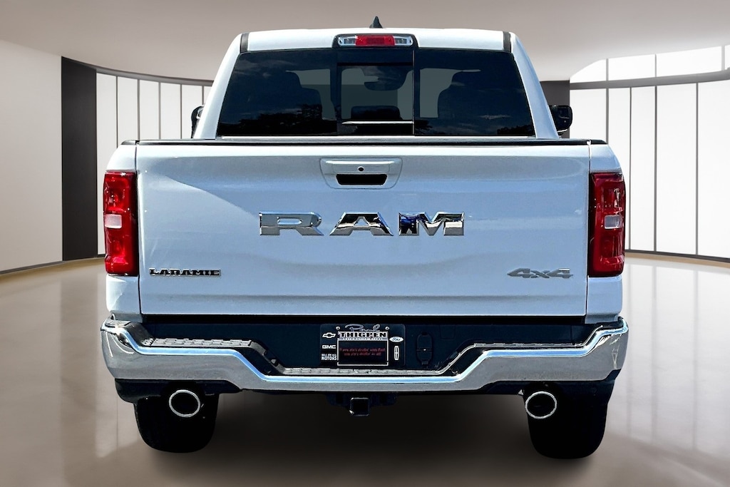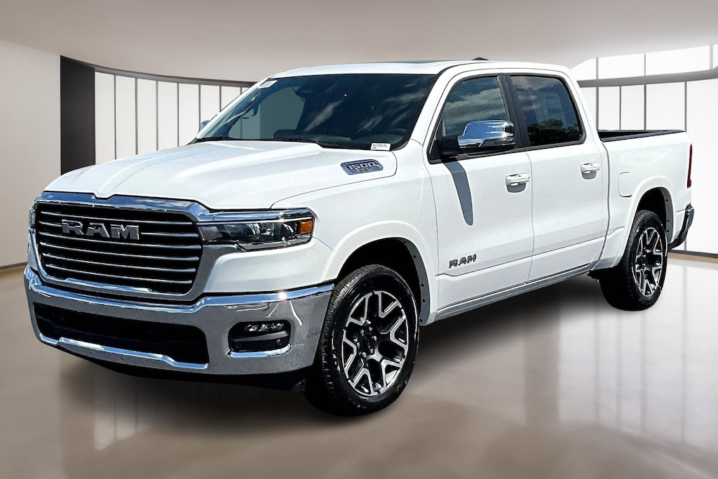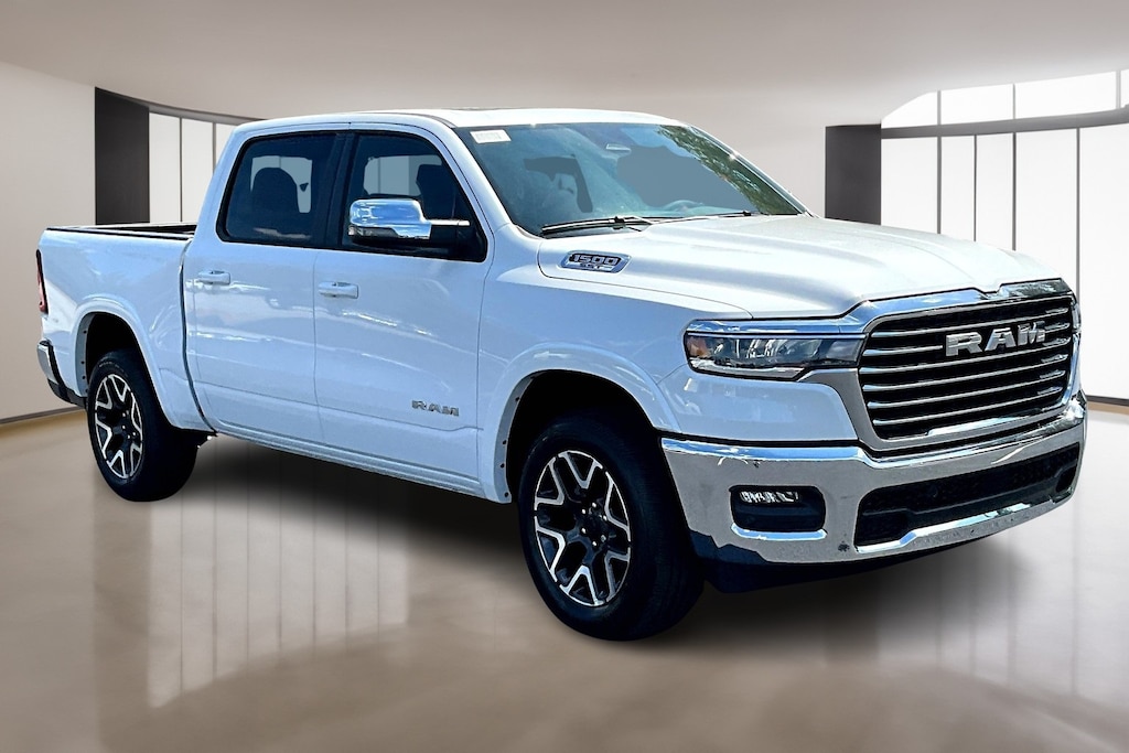Welcome to Paul Thigpen CDJR of Waynesboro, this vehicle comes with the following Laramie Level 1 Equipment Group (Rain Sensitive Windshield Wipers and Remote Tailgate Release), Quick Order Package 21H Laramie, 10 Speakers, 3 Rear Seat Head Restraints, 3.55 Rear Axle Ratio, 4 Way Front Headrests, 4-Wheel Disc Brakes, 4G LTE Wi-Fi Hot Spot, ABS brakes, Air Conditioning, Alloy wheels, AM/FM radio: SiriusXM with 360L, Anti-Spin Differential Rear Axle, Apple CarPlay, Apple CarPlay/Android Auto, Audio memory, Auto High-beam Headlights, Auto Power-Folding Mirrors, Auto-dimming door mirrors, Auto-Dimming Exterior Driver Mirror, Auto-dimming Rear-View mirror, Automatic temperature control, Brake assist, Bumpers: chrome, Chrome Exterior Mirrors, Compass, Connected Travel & Traffic Services, Connectivity - US/Canada, Convex Wide-Angle Exterior Mirror Insert, Delay-off headlights, Dome Dual LED Reading Lamp, Driver door bin, Driver Seat Memory, Driver vanity mirror, Dual front impact airbags, Dual front side impact airbags, Dual-Pane Panoramic Sunroof, Electronic Stability Control, Exterior Mirrors Courtesy Lamps, Exterior Mirrors w/Heating Element, Exterior Mirrors w/Memory, Exterior Mirrors w/Supplemental Signals, Front anti-roll bar, Front Center Armrest w/Storage, Front dual zone A/C, Front fog lights, Front reading lights, Front Seat Back Map Pockets, Front wheel independent suspension, Fully automatic headlights, Garage door transmitter, Google Android Auto, GPS Antenna Input, GPS Navigation, HD Radio, Heated door mirrors, Heated Front Seats, Heated front seats, Heated rear seats, Heated Steering Wheel, Heated steering wheel, Illuminated entry, Integrated Voice Command w/Bluetooth, Leather steering wheel, Leather Trim 40/20/40 Bench Seat, LED Dome/Reading Lamp, Low tire pressure warning, Manufacturer's Statement of Origin, Memory seat, Navigation System, Occupant sensing airbag, Outside temperature display, Overhead airbag, Overhead console, Panic alarm, ParkView Rear Back-Up Camera, Passenger door bin, Passenger vanity mirror, Power 2-Way Driver Lumbar Adjust, Power 2-Way Passenger Lumbar Adjust, Power Adjust 8-Way Front Passenger Seat, Power door mirrors, Power driver seat, Power passenger seat, Power steering, Power windows, Radio data system, Radio: Uconnect 5 Nav w/12.0" Display, RAM Grille Badge - Chrome, Rear anti-roll bar, Rear reading lights, Rear seat center armrest, Rear step bumper, Remote keyless entry, Security system, SiriusXM w/360L, Speed control, Split folding rear seat, Steering wheel mounted audio controls, Tachometer, Telescoping steering wheel, Tilt steering wheel, Traction control, Trip computer, Turn signal indicator mirrors, USB Host Flip, Variably intermittent wipers, Ventilated Front Seats, Ventilated front seats, Voltmeter, and Wheels: 20" x 9" Premium Paint/Polish.