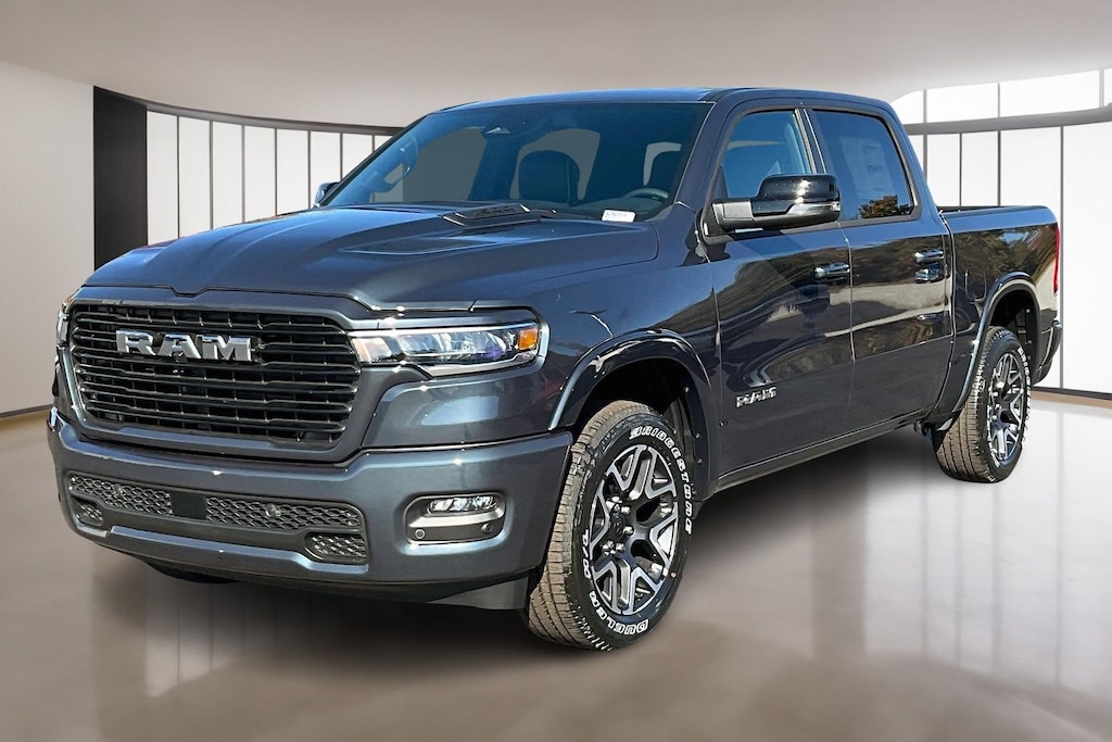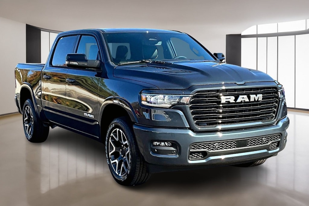 Welcome to Paul Thigpen CDJR of Waynesboro, this vehicle comes with the following Laramie Level 1 Equipment Group (Rain Sensitive Windshield Wipers and Remote Tailgate Release), Quick Order Package 21H Laramie, Sport Appearance Package (Accent Color Premium Power Mirrors, Auto Power-Folding Mirrors, Auto-Dimming Exterior Driver Mirror, Black Interior Accents, Black Painted Exterior Mirrors Caps, Body Color Front Bumper, Body Color Rear Bumper w/Step Pads, Bridgestone Brand Tires, Convex Wide-Angle Exterior Mirror Insert, Exterior Mirrors Courtesy Lamps, Exterior Mirrors w/Heating Element, Exterior Mirrors w/Memory, Exterior Mirrors w/Supplemental Signals, Grille Surround 3 Body Color Tex 2 Black, RAM Grille Badge - Chrome, and Sport Performance Hood), 10 Speakers, 3.55 Rear Axle Ratio, 4-Wheel Disc Brakes, 4G LTE Wi-Fi Hot Spot, ABS brakes, Active Noise Control System, Air Conditioning, Alloy wheels, AM/FM radio: SiriusXM with 360L, Apple CarPlay/Android Auto, Audio memory, Auto High-beam Headlights, Auto-dimming door mirrors, Auto-dimming Rear-View mirror, Automatic temperature control, Brake assist, Bumpers: chrome, Chrome Exterior Mirrors, Compass, Connected Travel & Traffic Services, Connectivity - US/Canada, Delay-off headlights, Driver door bin, Driver vanity mirror, Dual front impact airbags, Dual front side impact airbags, Electronic Stability Control, Front anti-roll bar, Front Bucket Seats, Front Center Armrest w/Storage, Front dual zone A/C, Front fog lights, Front reading lights, Front wheel independent suspension, Fully automatic headlights, Garage door transmitter, GPS Navigation, Heated door mirrors, Heated front seats, Heated rear seats, Heated steering wheel, Illuminated entry, Integrated Center Stack Radio, Integrated Voice Command w/Bluetooth, Leather steering wheel, Leather Trimmed Bucket Seats, Low tire pressure warning, Memory seat, Navigation System, Occupant sensing airbag, Off-Road Information Pages, Outside temperature display, Overhead airbag, Overhead console, Panic alarm, ParkView Rear Back-Up Camera, Passenger door bin, Passenger vanity mirror, Power door mirrors, Power driver seat, Power passenger seat, Power steering, Power windows, Radio data system, Radio: Uconnect 5 Nav w/12.0" Display, Rear anti-roll bar, Rear reading lights, Rear seat center armrest, Rear step bumper, Rear Wheelhouse Liners, Remote keyless entry, Security system, SiriusXM Radio Service, SiriusXM w/360L, Speed control, Split folding rear seat, Steering wheel mounted audio controls, Tachometer, Telescoping steering wheel, Tilt steering wheel, Traction control, Trip computer, Turn signal indicator mirrors, USB Host Flip, Variably intermittent wipers, Ventilated front seats, Voltmeter, and Wheels: 20" x 9" Premium Paint/Polish.