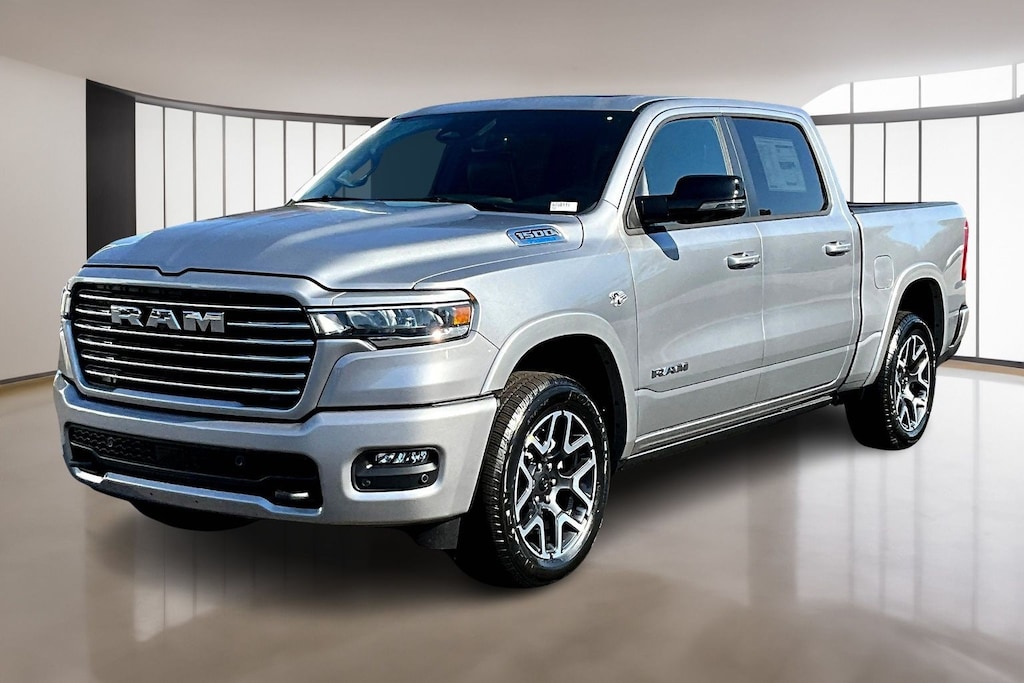 Welcome to Paul Thigpen CDJR of Waynesboro, this vehicle comes with the following Laramie Level 1 Equipment Group (Rain Sensitive Windshield Wipers and Remote Tailgate Release), Laramie Preferred Package (Accent Color Premium Power Mirrors, Auto Power-Folding Mirrors, Auto-Dimming Exterior Driver Mirror, Black Painted Exterior Mirrors Caps, Body Color Front Bumper, Body Color Rear Bumper w/Step Pads, Convex Wide-Angle Exterior Mirror Insert, Dome Dual LED Reading Lamp, Dual-Pane Panoramic Sunroof, Exterior Mirrors Courtesy Lamps, Exterior Mirrors w/Heating Element, Exterior Mirrors w/Memory, Exterior Mirrors w/Supplemental Signals, Grille Surround 3 Body Color Tex 4 Chrome, LED Dome/Reading Lamp, Power Deployable Running Boards, RAM Grille Badge - Chrome, Tow Hooks, and Trailer Brake Control), Quick Order Package 27H Laramie, 10 Speakers, 33 Gallon Fuel Tank, 4-Wheel Disc Brakes, 4G LTE Wi-Fi Hot Spot, ABS brakes, Active Noise Control System, Air Conditioning, Alloy wheels, AM/FM radio: SiriusXM with 360L, Apple CarPlay/Android Auto, Audio memory, Auto High-beam Headlights, Auto-dimming door mirrors, Auto-dimming Rear-View mirror, Automatic temperature control, Brake assist, Bumpers: chrome, Chrome Exterior Mirrors, Compass, Connected Travel & Traffic Services, Connectivity - US/Canada, Delay-off headlights, Driver door bin, Driver vanity mirror, Dual front impact airbags, Dual front side impact airbags, Electronic Stability Control, Front anti-roll bar, Front Bucket Seats, Front Center Armrest w/Storage, Front dual zone A/C, Front fog lights, Front reading lights, Front wheel independent suspension, Fully automatic headlights, Garage door transmitter, GPS Navigation, Heated door mirrors, Heated front seats, Heated rear seats, Heated steering wheel, Illuminated entry, Integrated Center Stack Radio, Integrated Voice Command w/Bluetooth, Leather steering wheel, Leather Trimmed Bucket Seats, Low tire pressure warning, Memory seat, MOPAR Front & Rear Rubber Floor Mats, Navigation System, Occupant sensing airbag, Off-Road Information Pages, Outside temperature display, Overhead airbag, Overhead console, Panic alarm, ParkView Rear Back-Up Camera, Passenger door bin, Passenger vanity mirror, Power door mirrors, Power driver seat, Power passenger seat, Power steering, Power windows, Radio data system, Radio: Uconnect 5 Nav w/12.0" Display, Rear anti-roll bar, Rear reading lights, Rear seat center armrest, Rear step bumper, Remote keyless entry, Security system, SiriusXM Radio Service, SiriusXM w/360L, Speed control, Split folding rear seat, Steering wheel mounted audio controls, Tachometer, Telescoping steering wheel, Tilt steering wheel, Traction control, Trip computer, Turn signal indicator mirrors, USB Host Flip, Variably intermittent wipers, Ventilated front seats, Voltmeter, and Wheels: 20" x 9" Premium Paint/Polish.