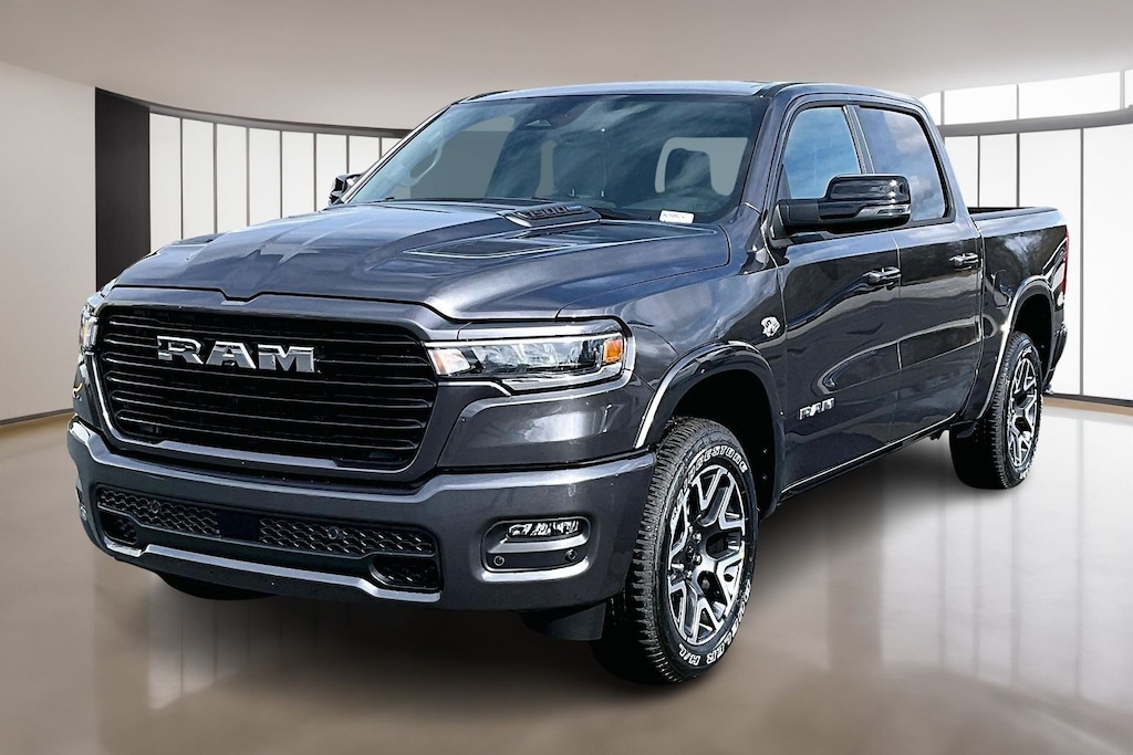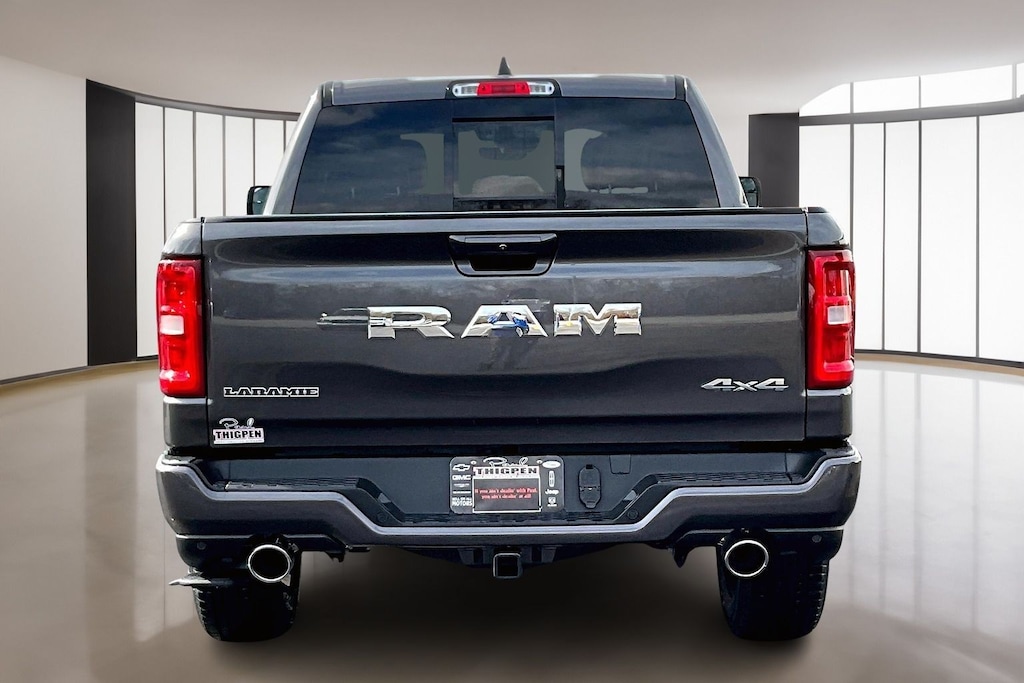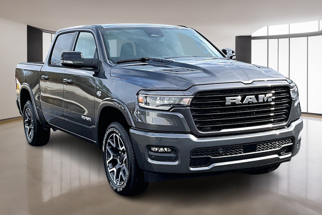 Welcome to Paul Thigpen CDJR of Waynesboro, this vehicle comes with the following Bed Utility Group (Exterior 115V AC Outlet, MOPAR 4 Adjustable Cargo Tie-Down Hooks, and MOPAR Spray in Bedliner), Laramie Level 1 Equipment Group (Rain Sensitive Windshield Wipers and Remote Tailgate Release), Quick Order Package 27H Laramie, Sport Appearance Package (Accent Color Premium Power Mirrors, Auto Power-Folding Mirrors, Auto-Dimming Exterior Driver Mirror, Black Interior Accents, Black Painted Exterior Mirrors Caps, Body Color Front Bumper, Body Color Rear Bumper with Step Pads, Bridgestone Brand Tires, Convex Wide-Angle Exterior Mirror Insert, Exterior Mirrors Courtesy Lamps, Exterior Mirrors with Heating Element, Exterior Mirrors with Memory, Exterior Mirrors with Supplemental Signals, Grille Surround 3 Body Color Tex 2 Black, RAM Grille Badge - Chrome, and Sport Performance Hood), Trailer Tow Group II (Trailer Brake Control, Trailer Light Check, Trailer Reverse Steering Control, and Trailer Tire Pressure Monitoring System), 10 Speakers, 33 Gallon Fuel Tank, 4-Wheel Disc Brakes, 4G LTE Wi-Fi Hot Spot, ABS brakes, Active Noise Control System, Air Conditioning, Alloy wheels, AM/FM radio: SiriusXM with 360L, Apple CarPlay/Android Auto, Audio memory, Auto High-beam Headlights, Auto-dimming door mirrors, Auto-dimming Rear-View mirror, Automatic temperature control, Brake assist, Bumpers: chrome, Chrome Exterior Mirrors, Compass, Connected Travel and Traffic Services, Connectivity - US/Canada, Delay-off headlights, Driver door bin, Driver vanity mirror, Dual front impact airbags, Dual front side impact airbags, Electronic Stability Control, Front anti-roll bar, Front Bucket Seats, Front Center Armrest w/Storage, Front dual zone A/C, Front fog lights, Front License Plate Bracket, Front reading lights, Front wheel independent suspension, Fully automatic headlights, Garage door transmitter, GPS Navigation, Heated door mirrors, Heated front seats, Heated rear seats, Heated steering wheel, Illuminated entry, Integrated Center Stack Radio, Integrated Voice Command with Bluetooth, Leather steering wheel, Leather Trimmed Bucket Seats, Low tire pressure warning, Manufacturer's Statement of Origin, Memory seat, Navigation System, Occupant sensing airbag, Off-Road Information Pages, Outside temperature display, Overhead airbag, Overhead console, Panic alarm, ParkView Rear Back-Up Camera, Passenger door bin, Passenger vanity mirror, Power door mirrors, Power driver seat, Power passenger seat, Power steering, Power windows, Radio data system, Radio: Uconnect 5 Navigation with 12.0" Display, Rear anti-roll bar, Rear reading lights, Rear seat center armrest, Rear step bumper, Remote keyless entry, Security system, SiriusXM Radio Service, SiriusXM with 360L, Speed control, Split folding rear seat, Steering wheel mounted audio controls, Tachometer, Telescoping steering wheel, Tilt steering wheel, Traction control, Trip computer, Turn signal indicator mirrors, USB Host Flip, Variably intermittent wipers, Ventilated front seats, Voltmeter, and Wheels: 20" x 9" Premium Paint/Polish. Recent Arrival!