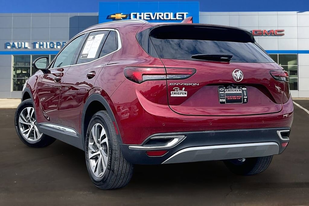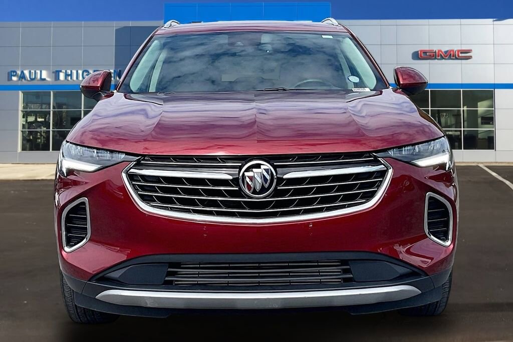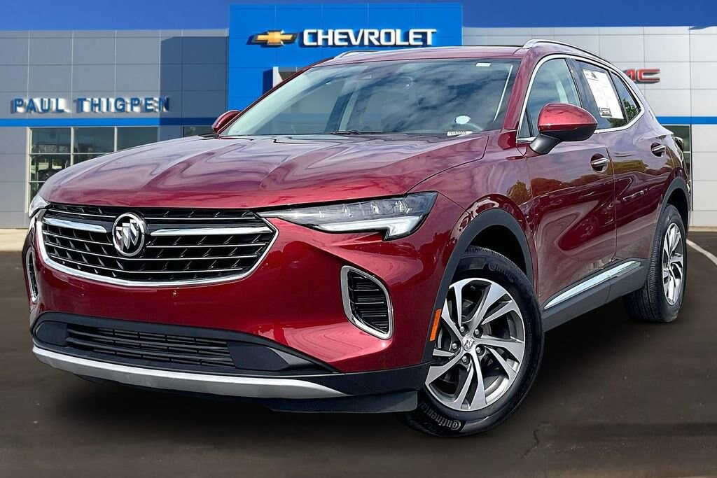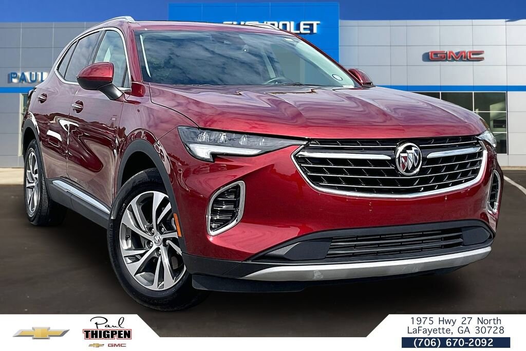 Preferred Equipment Group 1SL, Envision Essence, 4D Sport Utility, 2.0L Turbocharged, 9-Speed Automatic, FWD, Cinnabar Metallic, Ebony Seats Leather, 3.47 Final Drive Axle Ratio, 4-Wheel Disc Brakes, 7 Speakers, 7-Speaker Audio System Feature w/Amplifier, 8-Way Power Driver Seat Adjuster, ABS brakes, Air Conditioning, Alloy wheels, AM/FM radio: SiriusXM, Apple CarPlay/Android Auto, Auto High-beam Headlights, Auto-dimming door mirrors, Auto-dimming Rear-View mirror, Automatic Emergency Braking, Automatic temperature control, Brake assist, Bumpers: body-color, Compass, Delay-off headlights, Driver door bin, Driver vanity mirror, Dual front impact airbags, Dual front side impact airbags, Electronic Stability Control, Emergency communication system: OnStar and Buick connected services capable, Following Distance Indicator, Forward Collision Alert, Four wheel independent suspension, Front anti-roll bar, Front Bin Center Console USB Ports, Front Bucket Seats, Front Center Armrest, Front dual zone A/C, Front Passenger 8-Way Power Seat Adjuster, Front Pedestrian Braking, Front reading lights, Fully automatic headlights, Heated door mirrors, Heated Driver & Front Passenger Seats, Heated front seats, Heated steering wheel, Illuminated entry, IntelliBeam Headlamp Control w/Auto High Beam, Knee airbag, Lane Keep Assist w/Lane Departure Warning, Low tire pressure warning, Memory seat, Not Equipped w/Lane Change & Rear Cross Traffic Alerts, Not Equipped w/Rear Park Assist, Occupant sensing airbag, Outside temperature display, Overhead airbag, Overhead console, Panic alarm, Passenger door bin, Passenger vanity mirror, Perforated Leather-Appointed Seat Trim, Power door mirrors, Power driver seat, Power Liftgate, Power passenger seat, Power steering, Power windows, Premium audio system: Buick Infotainment System, Radio data system, Radio: Buick Infotainment System AM/FM Stereo, Rear anti-roll bar, Rear reading lights, Rear seat center armrest, Rear window defroster, Rear window wiper, Remote keyless entry, Security system, SiriusXM Radio, Speed control, Split folding rear seat, Spoiler, Steering wheel mounted audio controls, Telescoping steering wheel, Tilt steering wheel, Traction control, Trip computer, USB Charging-Only Ports, Variably intermittent wipers, Wheels: 18 Machined Aluminum w/Light Silver Met, and Wireless Apple CarPlay/Wireless Android Auto.