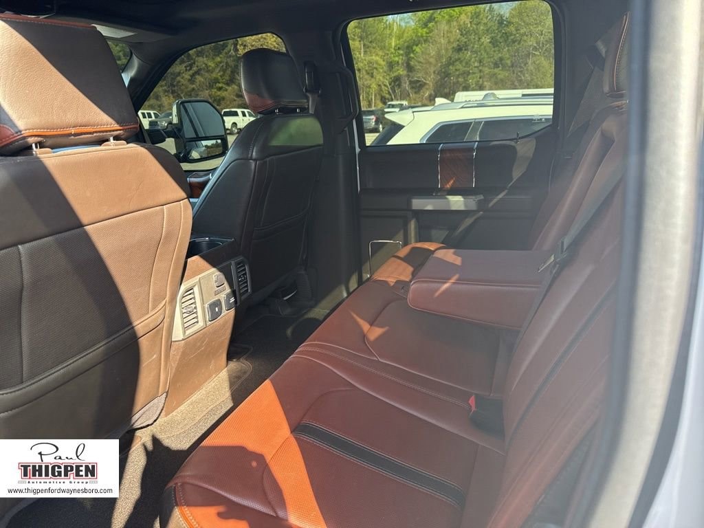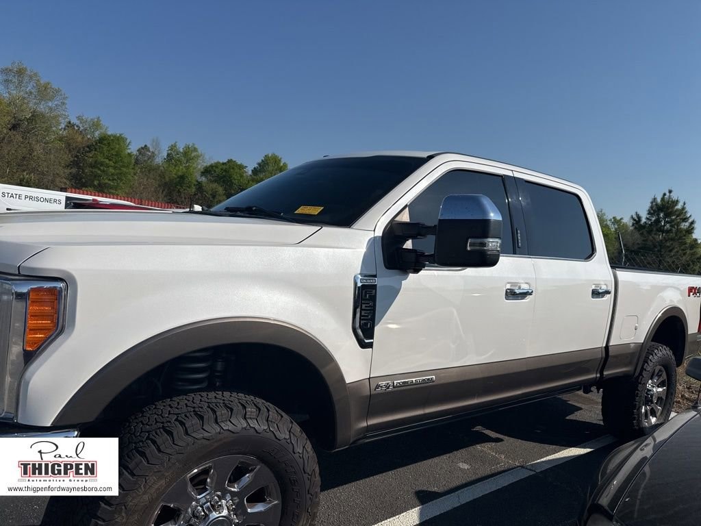 Certified. White Platinum 2018 Ford F-250SD King Ranch 4WD TorqShift 6-Speed Automatic Power Stroke 6.7L V8 DI 32V OHV Turbodiesel Ford Blue Certification Certified, 4WD, 10 Speakers, 110V/400W Outlet, 3.73 Axle Ratio, 4-Wheel Disc Brakes, ABS brakes, Adaptive Cruise Control & Collision Warning, Adaptive Steering, Adjustable pedals, Air Conditioning, Alloy wheels, AM/FM radio: SiriusXM, AppLink/Apple CarPlay and Android Auto, Auto High-beam Headlights, Auto tilt-away steering wheel, Auto-dimming Rear-View mirror, Automatic temperature control, BLIS Blind Spot Information System, Brake assist, CD player, Chrome Package, Compass, Delay-off headlights, Driver door bin, Driver vanity mirror, Dual front impact airbags, Dual front side impact airbags, Electronic Stability Control, Emergency communication system: SYNC 3 911 Assist, Exterior Parking Camera Rear, Flow-Through Console, Front anti-roll bar, Front Bucket Seats, Front Center Armrest, Front dual zone A/C, Front fog lights, Front reading lights, Fully automatic headlights, Garage door transmitter, GVWR: 10,000 lb Payload Package, Heated door mirrors, Heated front seats, Heated steering wheel, Illuminated entry, Illuminated running boards, King Ranch Ultimate Package, Leather steering wheel, Low tire pressure warning, Memory seat, Navigation System, Order Code 700A, Outside temperature display, Overhead airbag, Overhead console, Panic alarm, Passenger door bin, Passenger vanity mirror, Pedal memory, Power door mirrors, Power driver seat, Power passenger seat, Power steering, Power windows, Power-Deployable Running Boards, Quad Beam LED Headlamps & LED Taillamps, Radio data system, Radio: Premium Sony Audio w/Single-CD/MP3 Player, Rain sensing wipers, Rear CHMSL Camera, Rear Parking Sensors, Rear reading lights, Rear seat center armrest, Rear step bumper, Rear window defroster, Remote keyless entry, Security system, SiriusXM Radio, Speed control, Split folding rear seat, Steering wheel memory, Steering wheel mounted A/C controls, Steering wheel mounted audio controls, SYNC 3 Communications & Entertainment System, Tachometer, Tailgate Step & Handle, Telescoping steering wheel, Tilt steering wheel, Traction control, Trip computer, Turn signal indicator mirrors, Twin Panel Power Moonroof, Ultimate Trailer Tow Camera System, Unique King Ranch Leather 40/Console/40 Front Seats, Variably intermittent wipers, Ventilated front seats, Wheels: 18" Bright Machined Cast Aluminum, Wheels: 18" Chrome PVD Aluminum, Wheels: 20" Chrome PVD Aluminum, 4WD.