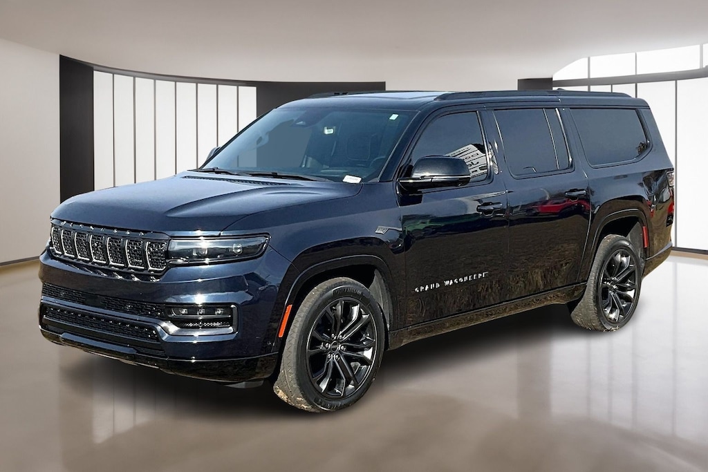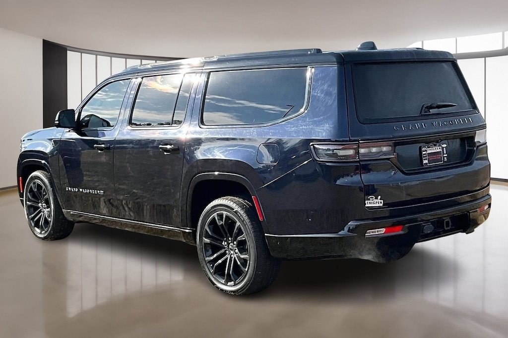 Welcome to Paul Thigpen CDJR of Waynesboro, this vehicle comes with the following Obsidian Appearance Package, Quick Order Package 28T Obsidian (23 Speaker McIntosh Reference Audio System, Adjustable Roof Rail Crossbars, Black Interior Accents, Black Roof, Front Console Cooler, Front Passenger Interactive Display, Gloss Black Upper & Lower DLO Molding, Piano Black Exterior Accents, Rearview Autodim Digital Display Mirror, Ventilated Rear Seats, and Wheels: 22" x 9.0" Tinted Polished w/Black Insert), Two Tone Paint Group, Grand Wagoneer L Series II, 4D Sport Utility, 3.0L I6, 8-Speed Automatic, 4WD, Midnight Sky, Black Leather, 19 Speakers, 3.92 Rear Axle Ratio, 3rd row seats: bench, 4-Wheel Disc Brakes, ABS brakes, Adjustable pedals, Air Conditioning, Alloy wheels, AM/FM radio: SiriusXM with 360L, Anti-whiplash front head restraints, Apple CarPlay/Android Auto, Audio memory, Auto High-beam Headlights, Auto-dimming door mirrors, Auto-dimming Rear-View mirror, Auto-leveling suspension, Automatic temperature control, Brake assist, Bumpers: body-color, Compass, Delay-off headlights, Driver door bin, Driver vanity mirror, Driver's Seat Mounted Armrest, Dual front impact airbags, Dual front side impact airbags, Electronic Stability Control, Emergency communication system, Four wheel independent suspension, Front anti-roll bar, Front Bucket Seats, Front Center Armrest w/Storage, Front dual zone A/C, Front fog lights, Front reading lights, Fully automatic headlights, Garage door transmitter, Genuine wood console insert, Genuine wood dashboard insert, Genuine wood door panel insert, Heads-Up Display, Heated door mirrors, Heated front seats, Heated rear seats, Heated steering wheel, Illuminated entry, Knee airbag, Leather steering wheel, Leather Trimmed Bucket Seats, Low tire pressure warning, Memory seat, Navigation System, Normal Duty Suspension, Occupant sensing airbag, Outside temperature display, Overhead airbag, Overhead console, Panic alarm, Passenger door bin, Passenger seat mounted armrest, Passenger vanity mirror, Pedal memory, Power adjustable front head restraints, Power door mirrors, Power driver seat, Power Liftgate, Power moonroof, Power passenger seat, Power steering, Power windows, Radio data system, Radio: Uconnect 5 Nav w/12.0" Display, Rain sensing wipers, Rear air conditioning, Rear anti-roll bar, Rear dual zone A/C, Rear reading lights, Rear seat center armrest, Rear window defroster, Rear window wiper, Reclining 3rd row seat, Remote keyless entry, Security system, Speed control, Speed-sensing steering, Speed-Sensitive Wipers, Split folding rear seat, Steering wheel memory, Steering wheel mounted audio controls, Tachometer, Telescoping steering wheel, Tilt steering wheel, Traction control, Trip computer, Turn signal indicator mirrors, Variably intermittent wipers, Ventilated front seats, and Voltmeter.