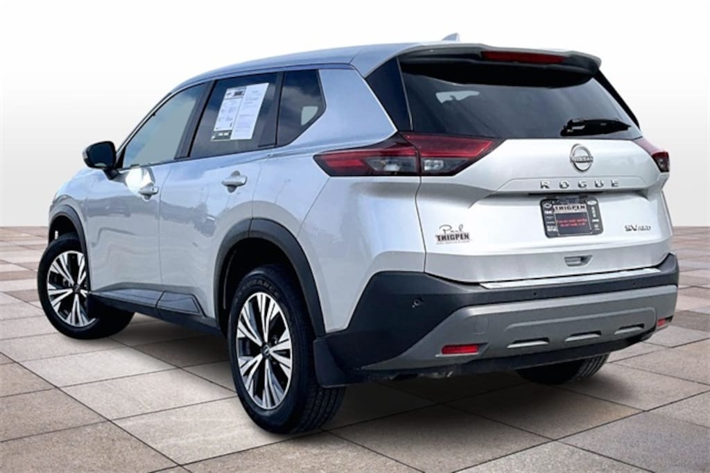 Brilliant Silver Metallic 2023 Nissan Rogue SV AWD AWD 1.5L I3 Turbocharged DOHC 12V LEV3-ULEV50 201hp 8" Color Touchscreen, Android Auto, Apple Carplay, Auto Emergency Braking, Auto LED Headlights, Backup Camera, Blind Spot Monitoring, Bluetooth w/ Streaming Audio, Forward Collision Alert, Forward Pedestrian Braking, Lane Departure System, Parking Sensors, Power Mirror Package, Power Package, Push Button Start, Rear Cross Traffic Alert, Remote Start, Reverse Brake Assist, Reverse Sensing, Safety Package, 4D Sport Utility, 1.5L I3 Turbocharged DOHC 12V LEV3-ULEV50 201hp, CVT with Xtronic, AWD, 18" Aluminum Alloy Wheels, 4-Wheel Disc Brakes, ABS brakes, Auto High-beam Headlights, Automatic temperature control, Brake assist, Delay-off headlights, Electronic Stability Control, Emergency communication system: NissanConnect Services, First Aid Kit, Front Center Armrest, Front dual zone A/C, Fully automatic headlights, Heated door mirrors, Illuminated entry, Low tire pressure warning, NissanConnect featuring Apple CarPlay and Android Auto, Outside temperature display, Overhead console, Panic alarm, Power door mirrors, Power driver seat, Power steering, Power windows, Rear Parking Sensors, Rear seat center armrest, Rear window wiper, Remote keyless entry, Speed-Sensitive Wipers, Split folding rear seat, Spoiler, Steering wheel mounted audio controls, Telescoping steering wheel, Tilt steering wheel, Trip computer.